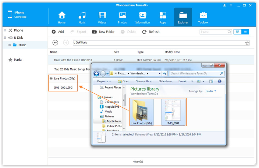 NB: La funzione "Explorer" che andiamo a descrivere funziona al momento solo con la versione Windows di TunesGO.